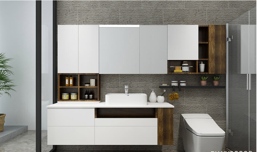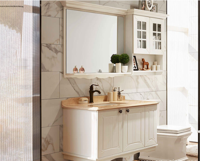 The custom bathroom vanities use high-quality cabinet board and edge-banding materials, including Rehau edge-banding strips imported from Germany, which have good flexibility, a low wear rate, and are not easily corroded or deformed.